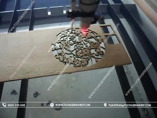 máy khắc hoa văn lazer đang hoạt động tại xưởng sản xuất sơn mài tương bình hiệp